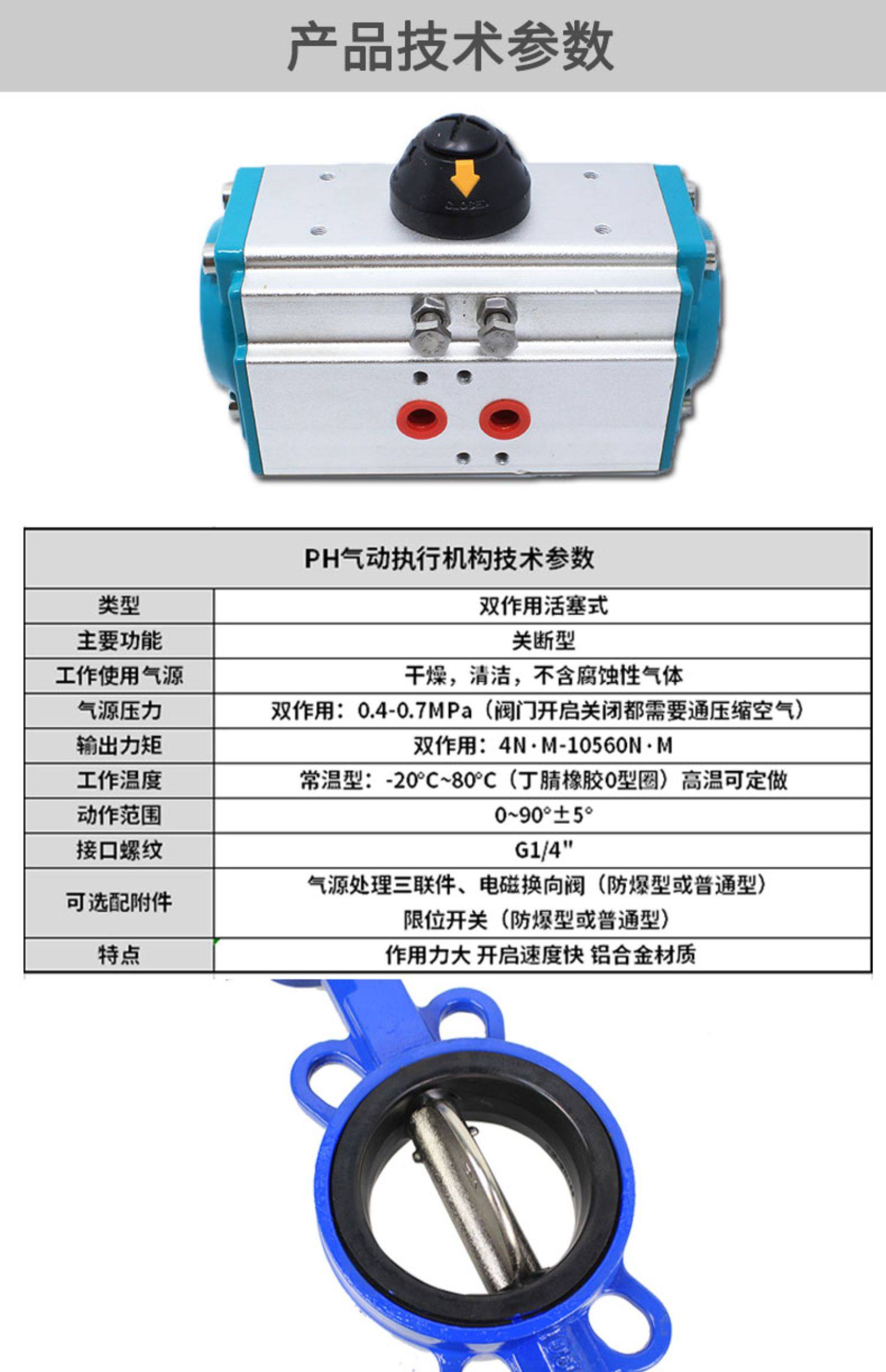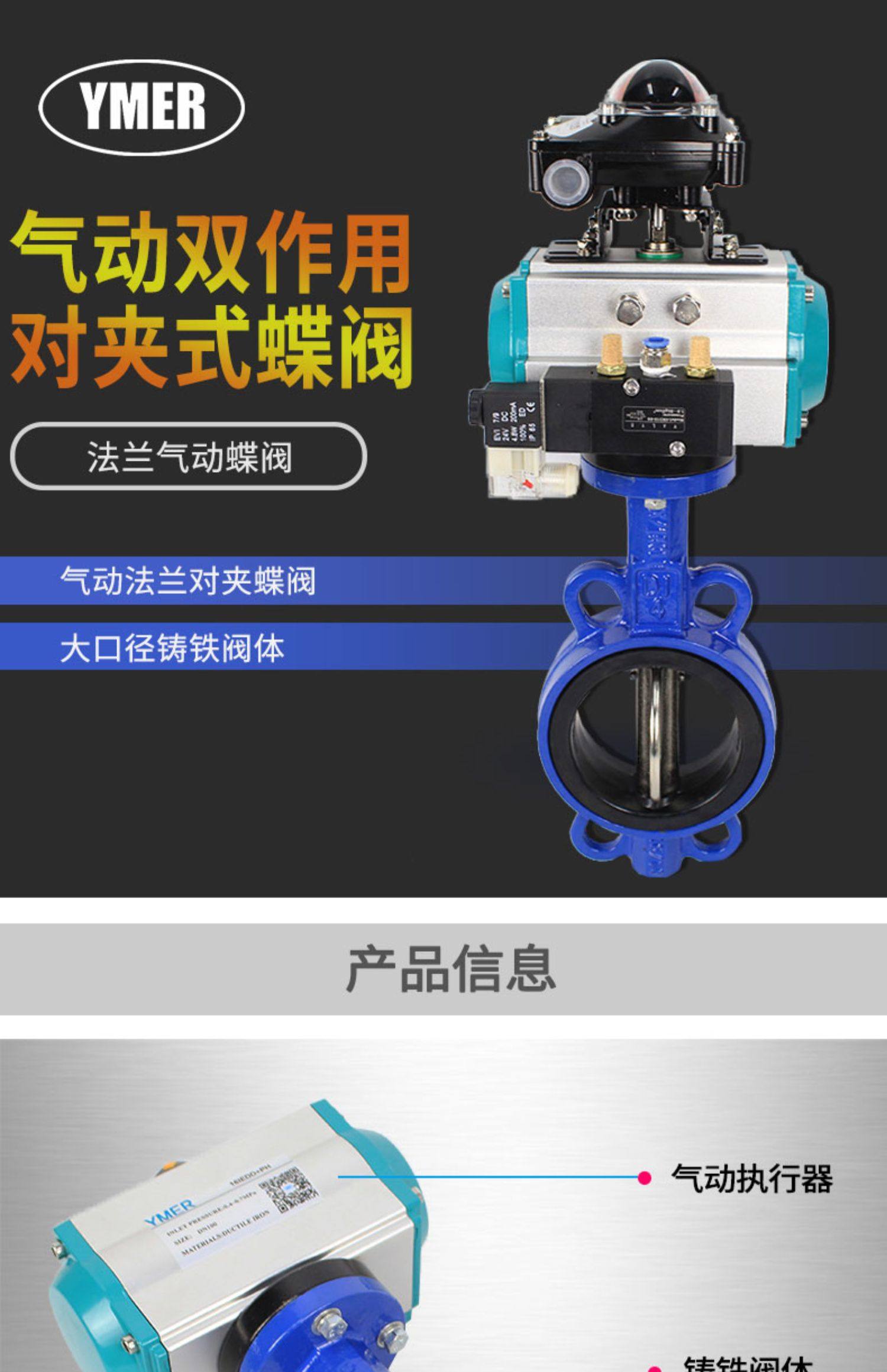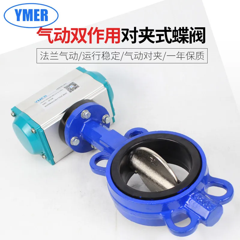 气动蝶阀气动双作用对夹式蝶阀法兰气动蝶阀DN100 150 200 300